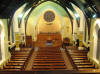 Photographed from the west gallery, shows the rose window, organ, Chancel and Pulpit. |